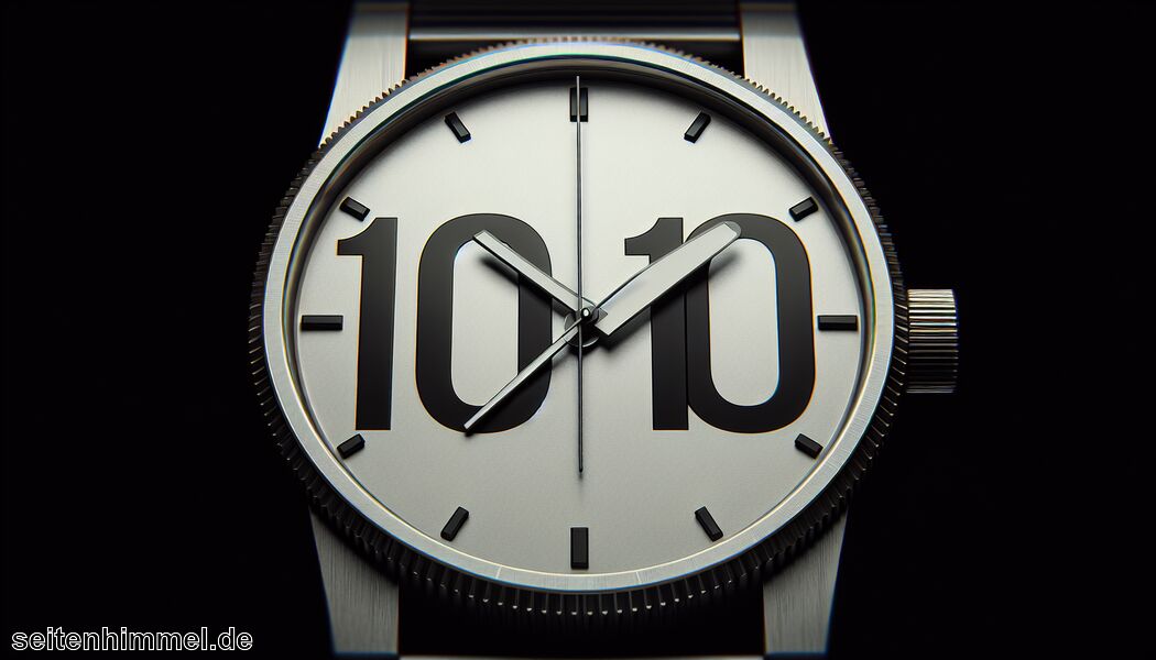 Die Doppelte Eins, dargestellt durch die Uhrzeit 10:10, hat eine tiefgehende Verbindung zur Intuition und zum Selbstbewusstsein. Wenn du diese Zahl wahrnimmst, kann das als Hinweis gedeutet werden, auf deine innere Stimme zu hören. Die Eins steht oft für neue Anfänge und Individualität, was dir helfen kann, deinen eigenen Weg klarer zu erkennen.